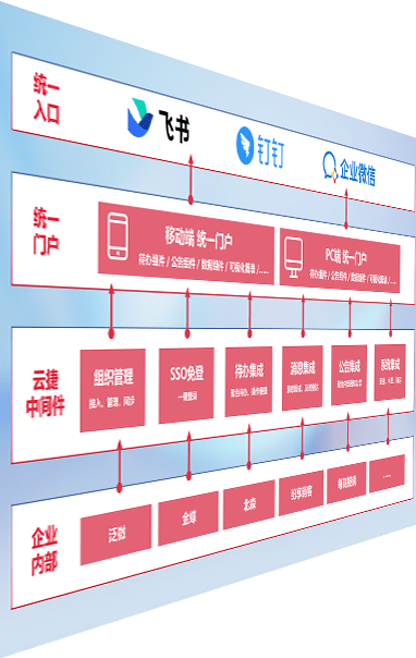 对协作平台提供支持服务,,支持企业应用与协作平台对接,,包含组织同步、、、消息集成、、待办集成等。。。支持目前主流的协作平台:钉钉、、、企微和飞书。。。。